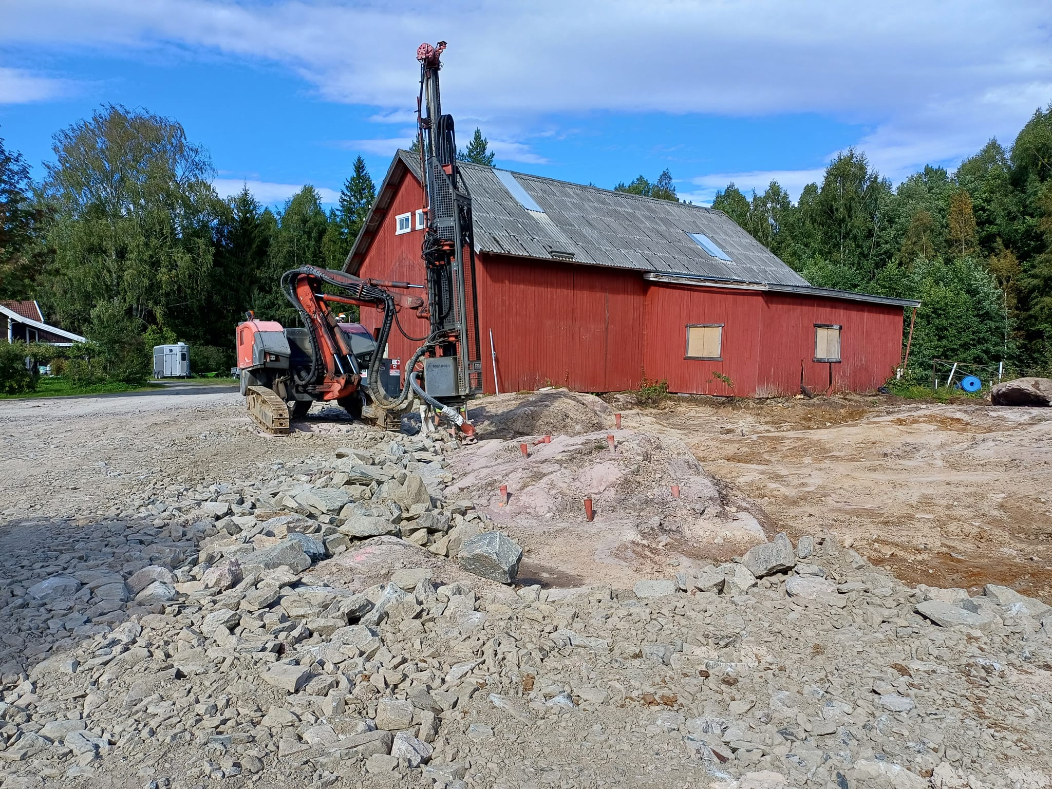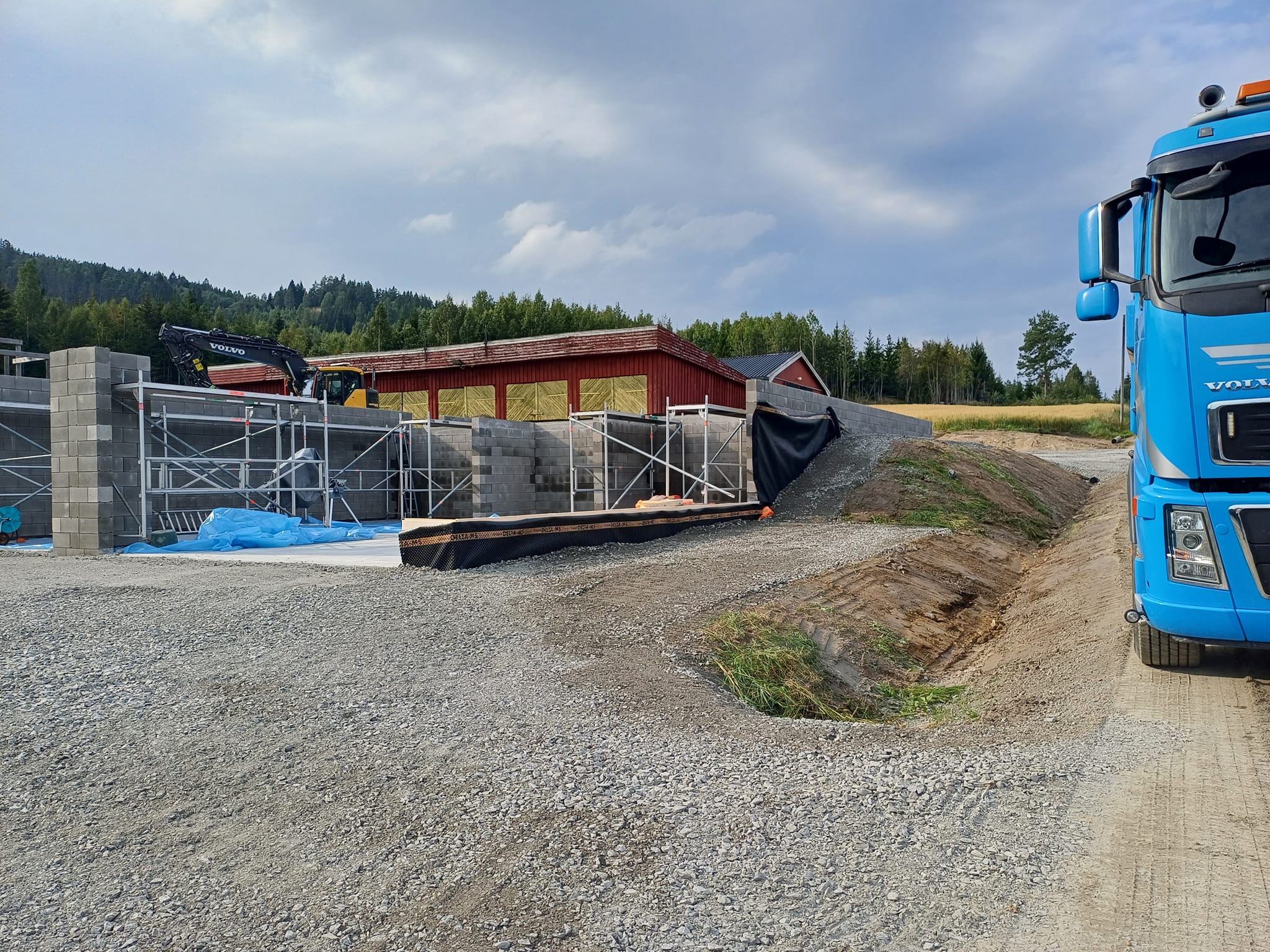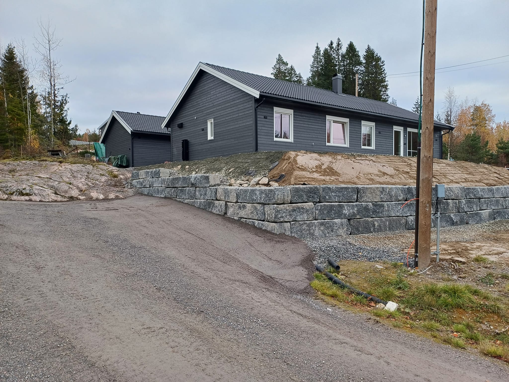 Vi utfører oppdrag som grunnarbeider for boliger, garasjer, industribygg, hageplanering, gårdsplasser og veibygging.